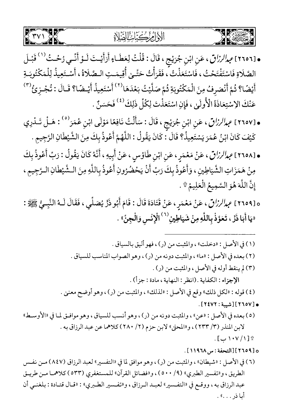 ° [٢٦٥٩] عبد الرزاق، عَنْ مَعْمَرٍ، عَنْ قَتَادَةَ قَالَ: قَامَ أَبُو ذَرٍّ يُصلِّي، فَقَالَ لَهُ النَّبِيُّ - صلى الله عليه وسلم -: "يَا أَبَا ذَرٍّ، تَعَوَّذْ بِاللَّهِ مِنْ شَيَاطِينِ (¬٦) الْإِنْسِ وَالْجِنِّ".