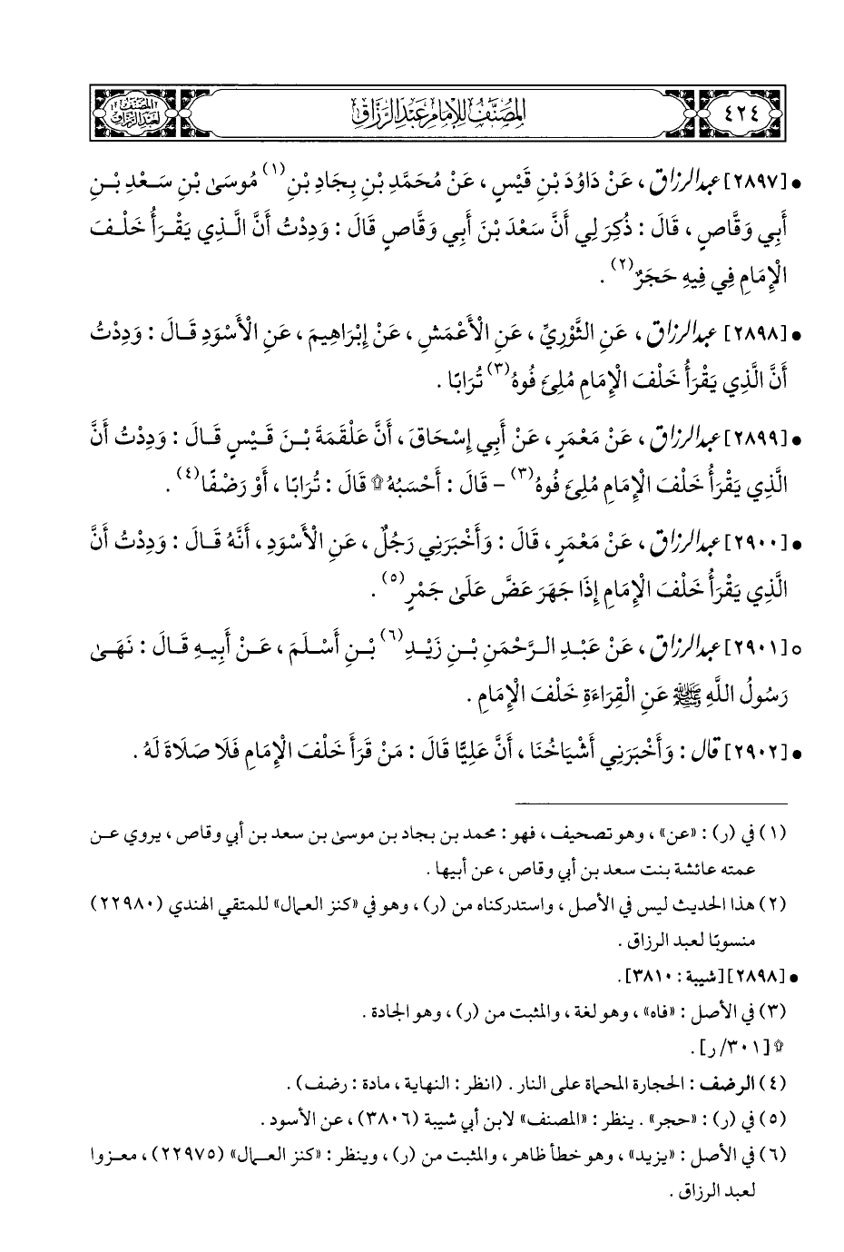 ° [٢٩٠١] عبد الرزاق، عَنْ عَبْدِ الرَّحْمَنِ بْنِ زَيْدِ (¬٦) بْنِ أَسْلَمَ، عَنْ أَبِيهِ قَالَ: نَهَى رَسُولُ اللهِ - صلى الله عليه وسلم - عَنِ الْقِرَاءَةِ خَلْفَ الْإِمَامِ.