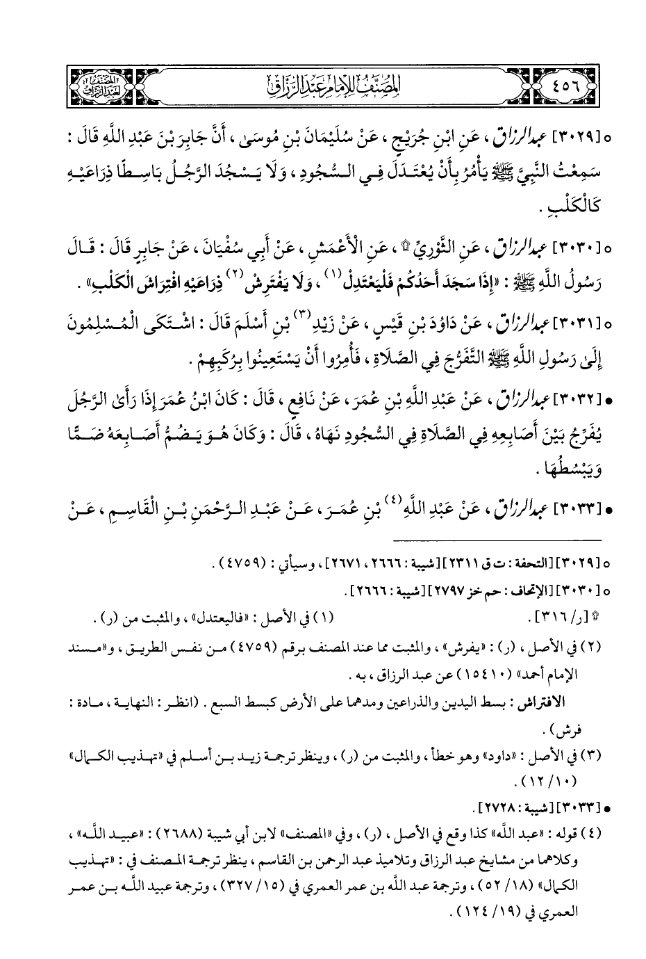 ° [٣٠٢٩] عبد الرزاق، عَنِ ابْنِ جُرَيْجٍ، عَنْ سُلَيْمَانَ بْنِ مُوسَى، أَنَّ جَابِرَ بْنَ عَبْدِ اللَّهِ قَالَ: سَمِعْتُ النَّبِيَّ - صلى الله عليه وسلم - يَأْمُرُ بِأَنْ يُعْتَدَلَ فِي السُّجُودِ، وَلَا يَسْجُدَ الرَّجُلُ بَاسِطًا ذِرَاعَيْهِ كَالْكَلْبِ.