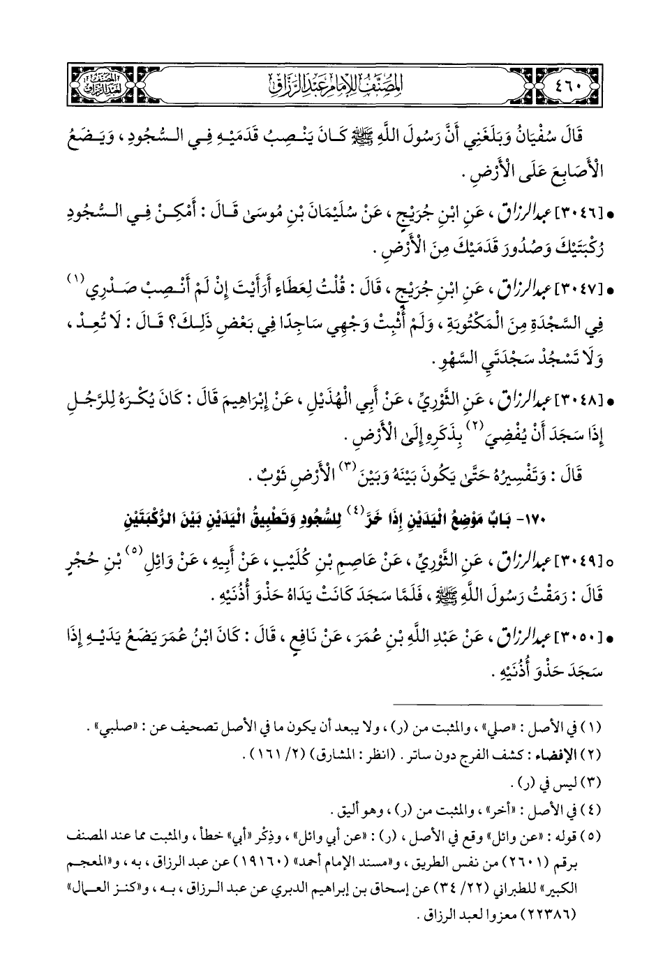 ° [٣٠٤٩] عبد الرزاق، عَنِ الثَّوْرِيِّ، عَنْ عَاصِمِ بْنِ كُلَيْبٍ، عَنْ أَبِيهِ، عَنْ وَائِلِ (¬٥) بْنِ حُجْرٍ قَالَ: رَمَقْتُ رَسُولَ اللَّهِ - صلى الله عليه وسلم -، فَلَمَّا سَجَدَ كَانَتْ يَدَاهُ حَذْوَ أُذُنَيْهِ.