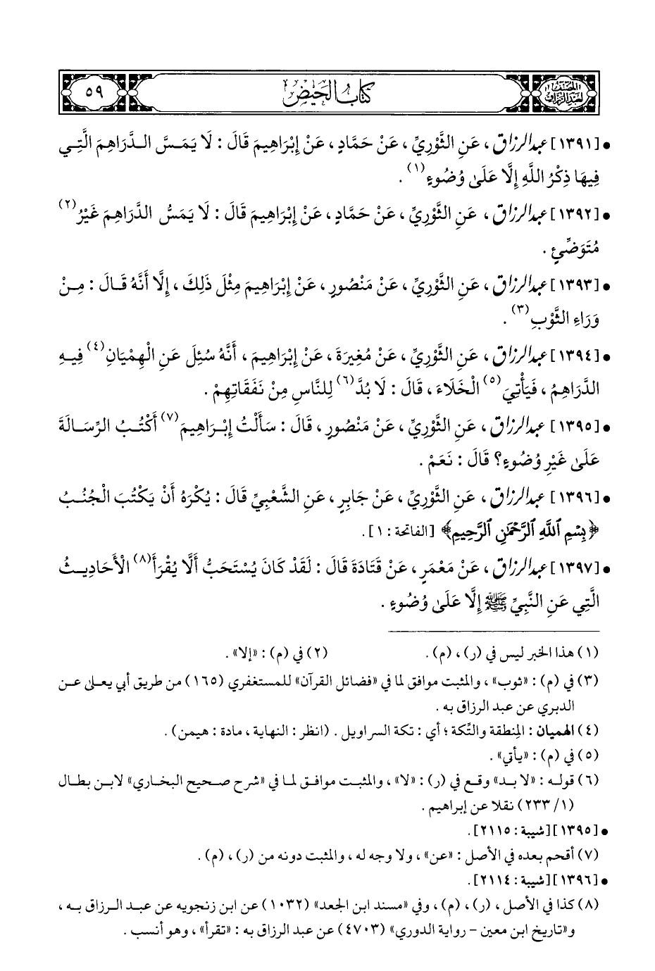 • [١٣٩٢] عبد الرزاق، عَنِ الثَّوْرِيِّ، عَنْ حَمَّادٍ، عَنْ إِبْرَاهِيمَ قَالَ: لَا يَمَسُّ الدَّرَاهِمَ غَيْرُ (¬٢) مُتَوَضِّئٍ.