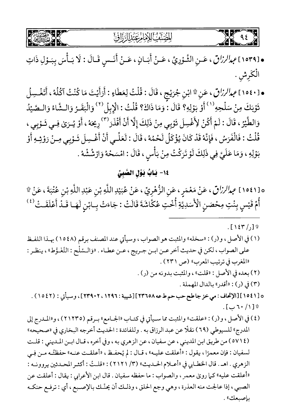 (¬١) في الأصل، و (ر): "سخله" والمثبت هو الصواب، وسيأتي عند المصنف برقم (١٥٤٨) بهذا اللفظ على الصواب، لكن في حديث آخر عن ابن جريج، عن عطاء. "وَالسَّلْح: التَّغَوُّط"، ينظر: "المغرب في ترتيب المعرب" (ص ٢٣١).