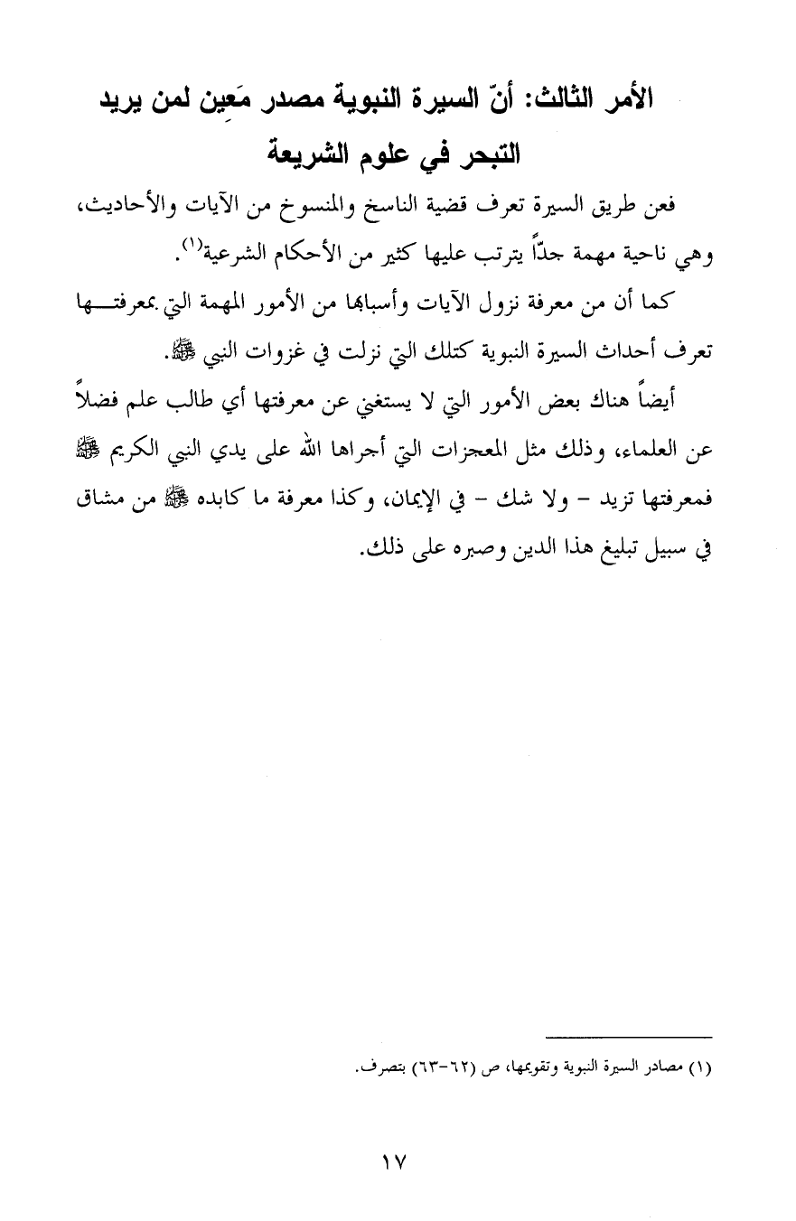 الأمر الثالث: أنّ السيرة النبوية مصدر مَعِين لمن يريد التبحر في علوم الشريعة