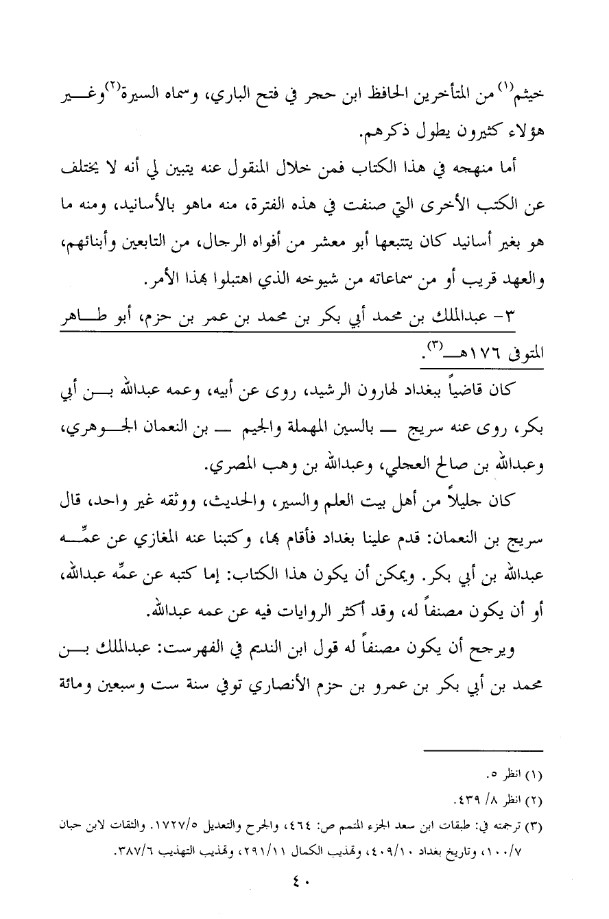 خيثم (1) من المتأخرين الحافظ ابن حجر في فتح الباري، وسماه السيرة (2) وغير هؤلاء كثيرون يطول ذكرهم.