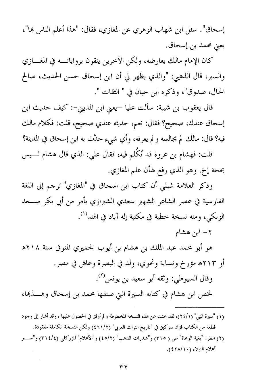 لخص ابن هشام في كتابه السيرة التي صنفها محمد بن إسحاق وهذبها،