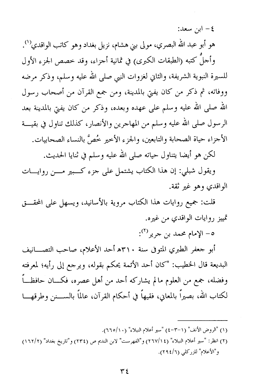 (1) "الروض الأنف" (1-3-4) "سير أعلام النبلاء" (10/665) .