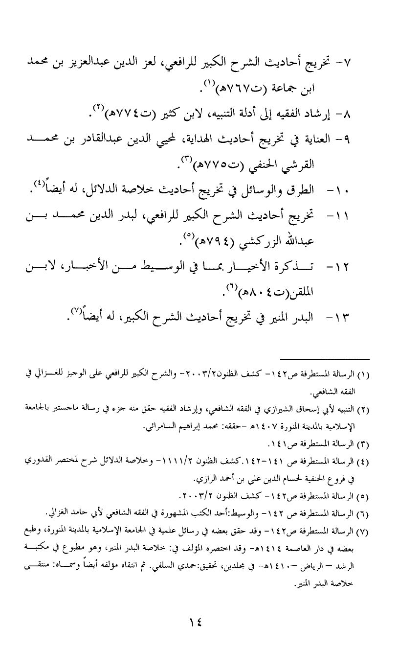 13- البدر المنير في تخريج أحاديث الشرح الكبير، له أيضاً (7) .