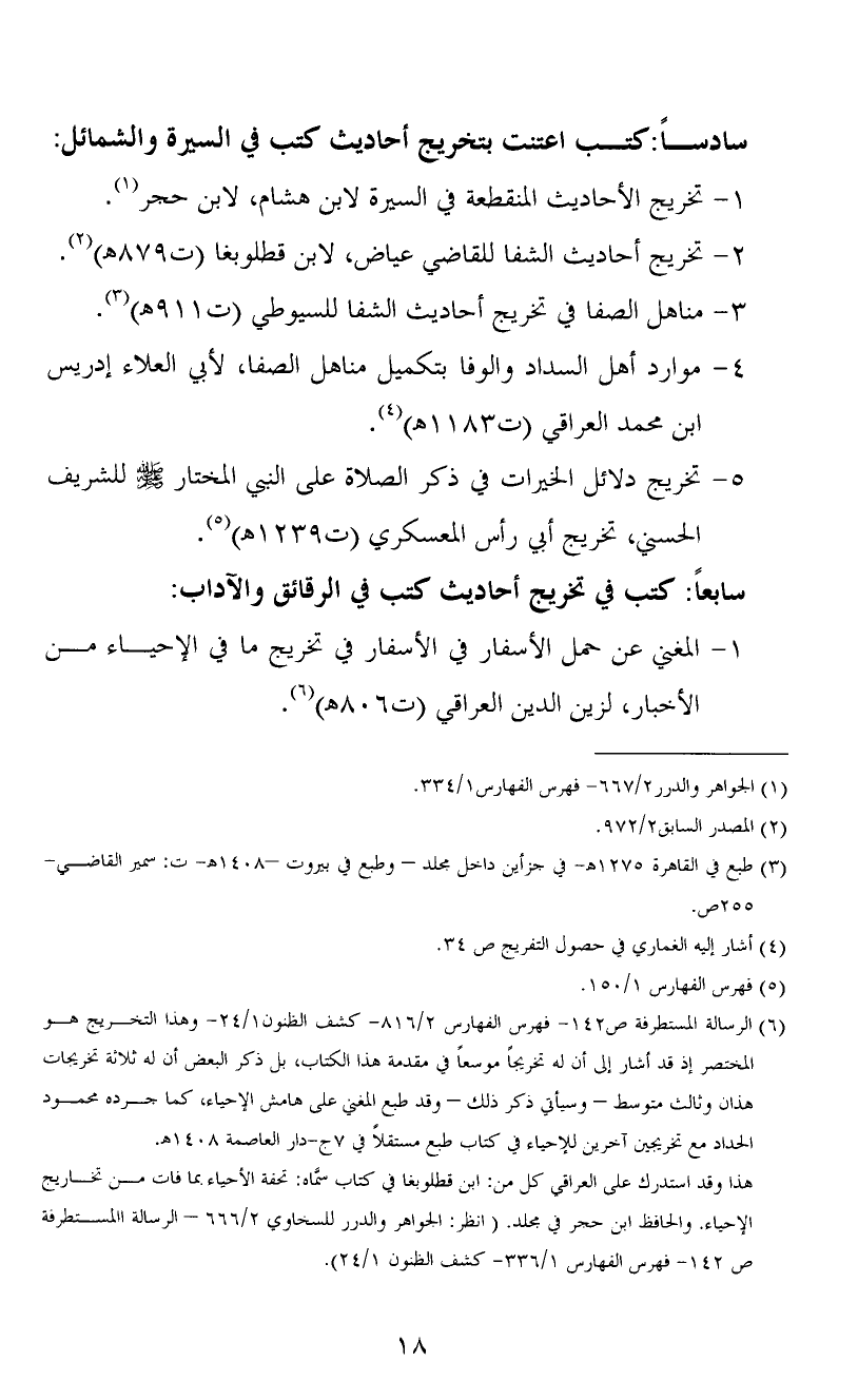 1- المغني عن حمل الأسفار في الأسفار في تخريج ما في الإحياء من الأخبار، لزين الدين العراقي (ت806?) (6) .