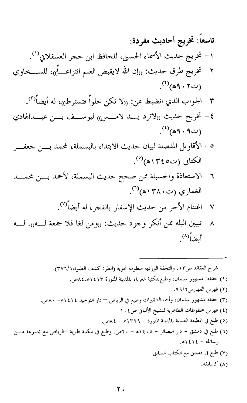 (1) حققه: مشهور سلمان، وطبع بمكتبة الغرباء بالمدينة المنورة 1413?.84ص.