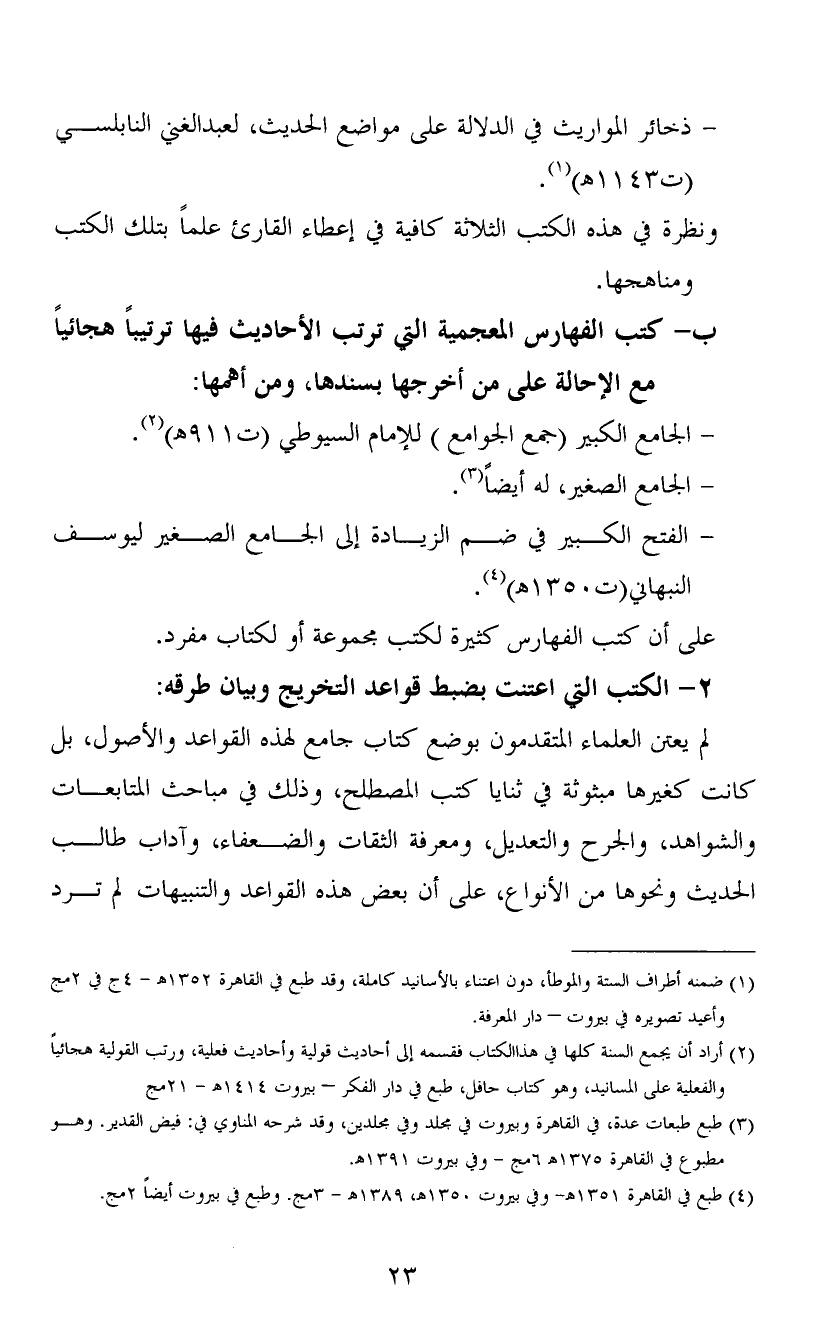- ذخائر المواريث في الدلالة على مواضع الحديث، لعبد الغني النابلسي (ت1143?) (1) .