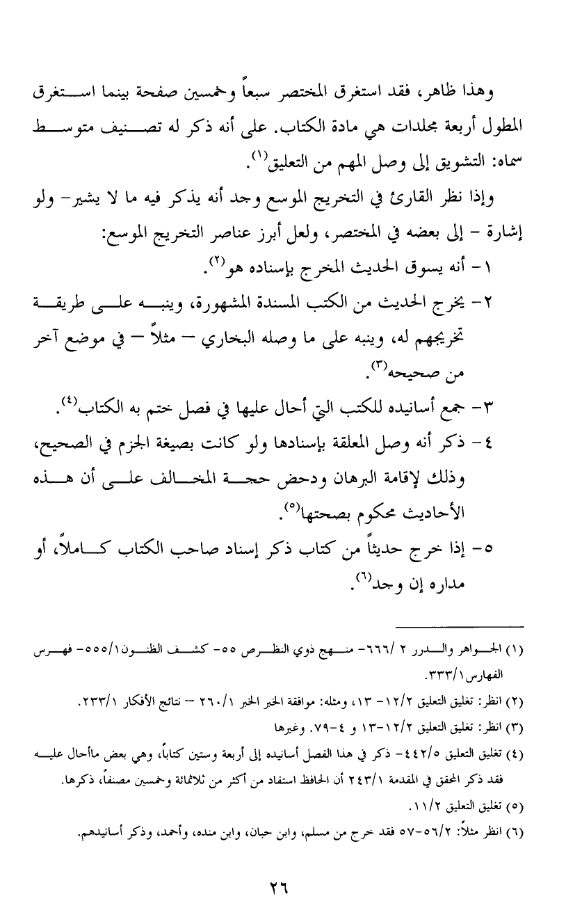 وإذا نظر القارئ في التخريج الموسع وجد أنه يذكر فيه ما لا يشير- ولو إشارة - إلى بعضه في المختصر، ولعل أبرز عناصر التخريج الموسع:
