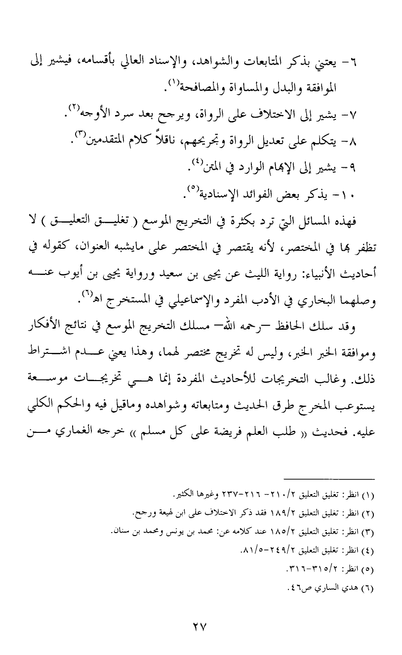 (1) انظر: تغليق التعليق 2/210- 216-237 وغيرها الكثير.