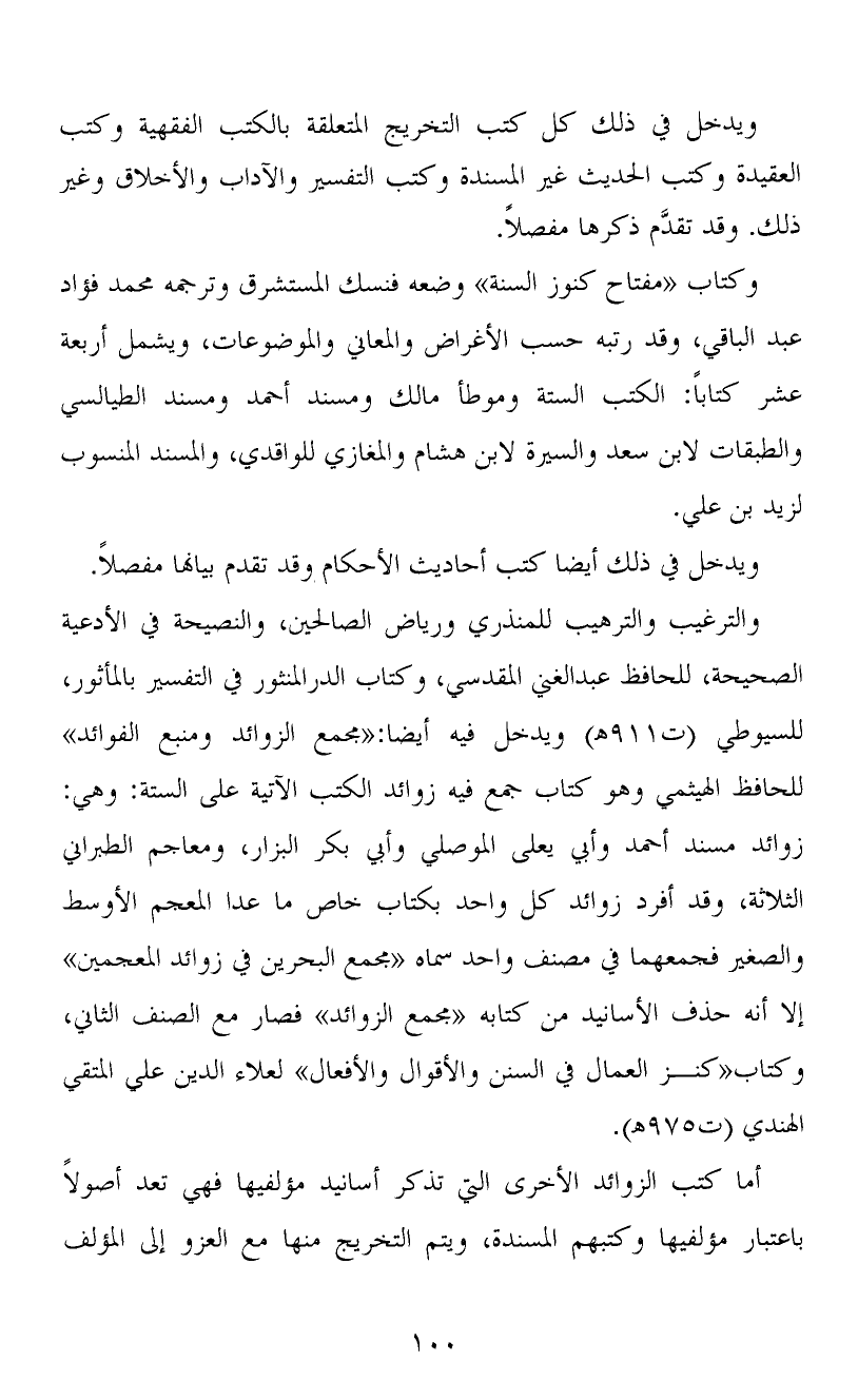 وكتاب «مفتاح كنوز السنة» وضعه فنسك المستشرق وترجمه محمد فؤاد عبد الباقي، وقد رتبه حسب الأغراض والمعاني والموضوعات، ويشمل أربعة عشر كتاباً: الكتب الستة وموطأ مالك ومسند أحمد ومسند الطيالسي والطبقات لابن سعد والسيرة لابن هشام والمغازي للواقدي، والمسند المنسوب لزيد بن علي.