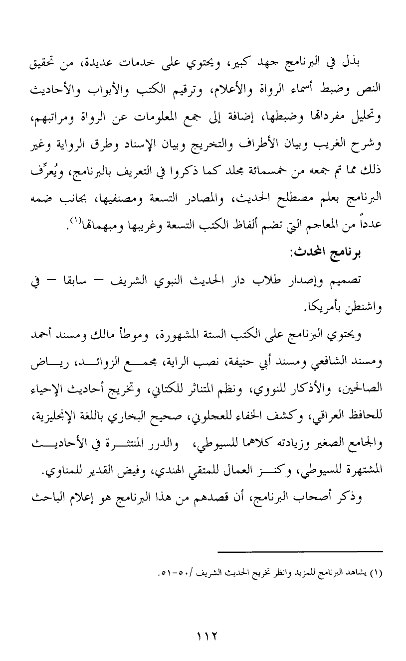 (1) يشاهد البرنامج للمزيد وانظر تخريج الحديث الشريف /50-51.
