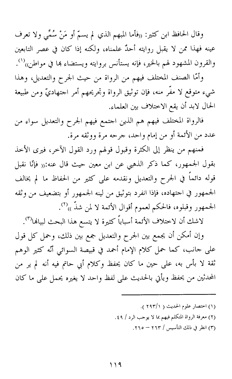 فالرواة المختلف فيهم هم الذين اجتمع فيهم الجرح والتعديل سواء من عدد من الأئمة أو من إمام واحد، جرحه مرة ووثقه مرة.