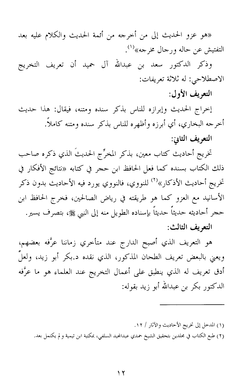 (1) المدخل إلى تخريج الأحاديث والآثار / 12.