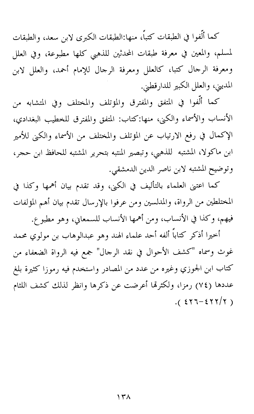 كما ألّفوا في المتفق والمفترق والمؤتلف والمختلف وفي المتشابه من الأنساب والأسماء والكنى، منها: كتاب: المتفق والمفترق للخطيب البغدادي، الإكمال في رفع الارتياب عن المؤتلف والمختلف من الأسماء والكنى للأمير ابن ماكولا، المشتبه للذهبي، وتبصير المنتبه بتحرير المشتبه للحافظ ابن حجر، وتوضيح المشتبه لابن ناصر الدين الدمشقي.