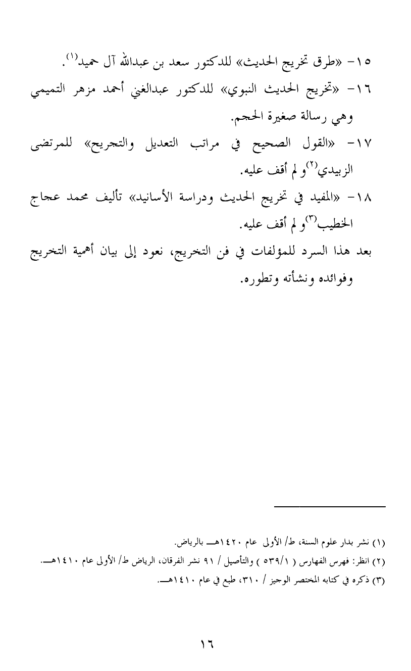 15- «طرق تخريج الحديث» للدكتور سعد بن عبد الله آل حميد (1) .
