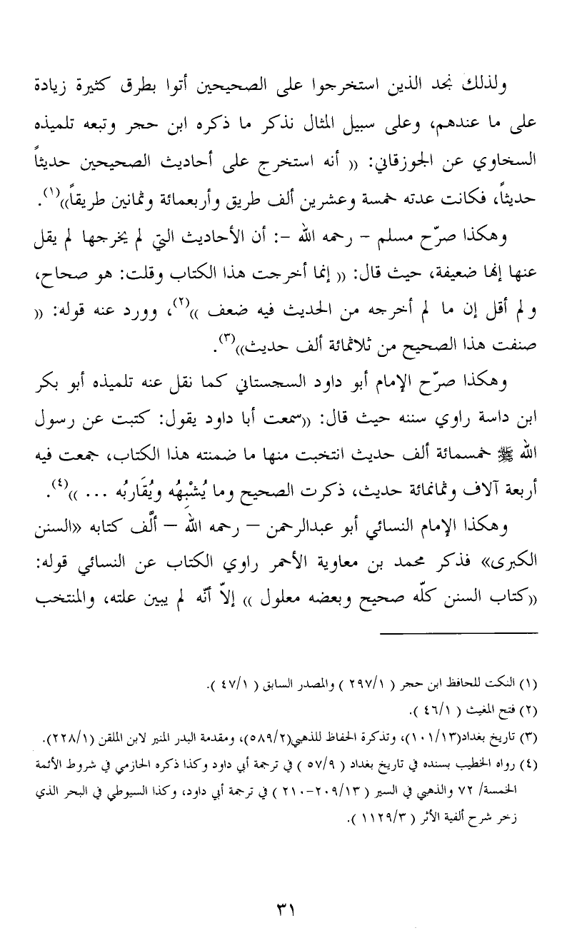 (4) رواه الخطيب بسنده في تاريخ بغداد (9/57) في ترجمة أبي داود وكذا ذكره الحازمي في شروط الأئمة الخمسة/ 72 والذهبي في السير (13/209-210) في ترجمة أبي داود، وكذا السيوطي في البحر الذي زخر شرح ألفية الأثر (3/1129) .