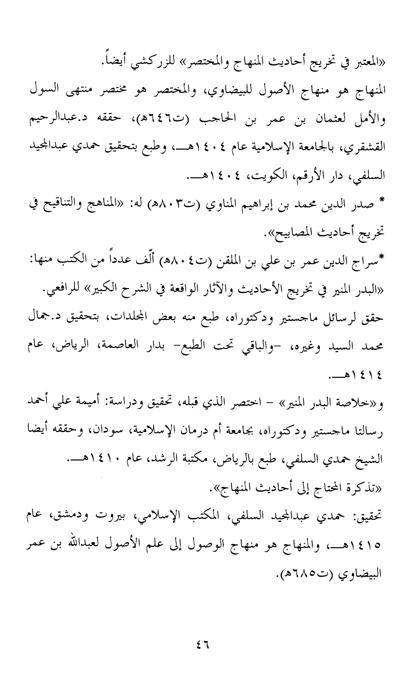 المنهاج هو منهاج الأصول للبيضاوي، والمختصر هو مختصر منتهى السول والأمل لعثمان بن عمر بن الحاجب (ت646هـ) ، حققه د. عبد الرحيم القشقري، بالجامعة الإسلامية عام 1404هـ، وطبع بتحقيق حمدي عبد المجيد السلفي، دار الأرقم، الكويت، 1404هـ.
