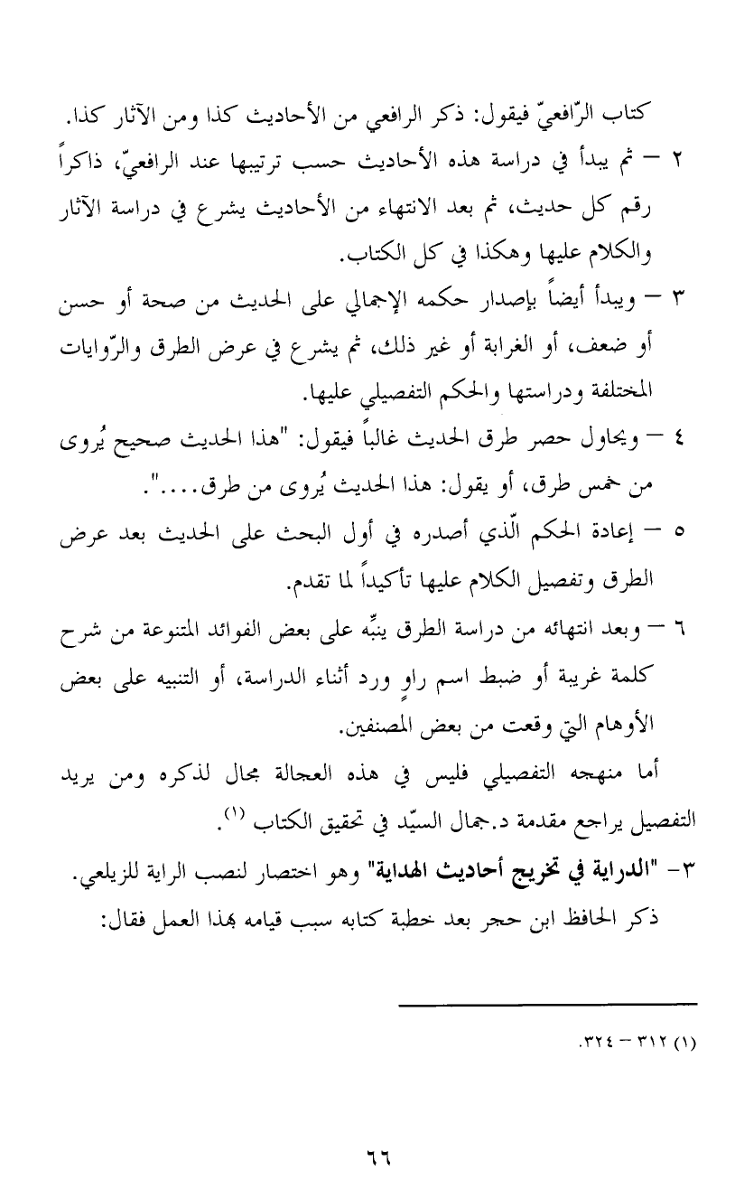 2 – ثم يبدأ في دراسة هذه الأحاديث حسب ترتيبها عند الرافعيّ، ذاكراً رقم كل حديث، ثم بعد الانتهاء من الأحاديث يشرع في دراسة الآثار والكلام عليها وهكذا في كل الكتاب.