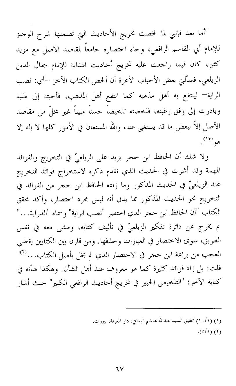 ولا شك أن الحافظ ابن حجر يزيد على الزيلعيّ في التخريج والفوائد المهمة وقد أشرت في الحديث الذي تقدم ذكره لاستخراج فوائد التخريج عند الزيلعيّ في الحديث المذكور وما زاده الحافظ ابن حجر من الفوائد في التخريج نحو الحديث المذكور مما يدل أنه ليس مجرد اختصار، وأكد محقق الكتاب "أن الحافظ ابن حجر الذي اختصر "نصب الراية" وسماه "الدراية…" لم يخرج عن دائرة تفكير الزيلعيّ في تأليف كتابه، ومشى معه في نفس الطريق، سوى الاختصار في العبارات وحذفها. ومن قارن بين الكتابين يقضي العجب من براعة ابن حجر في الاختصار الذي لم يخل بأصل الكتاب… (2) " قلت: بل زاد فوائد كثيرة كما هو معروف عند أهل الشأن. وهكذا شأنه في كتابه الآخر: "التلخيص الحبير في تخريج أحاديث الرافعي الكبير" حيث أشار