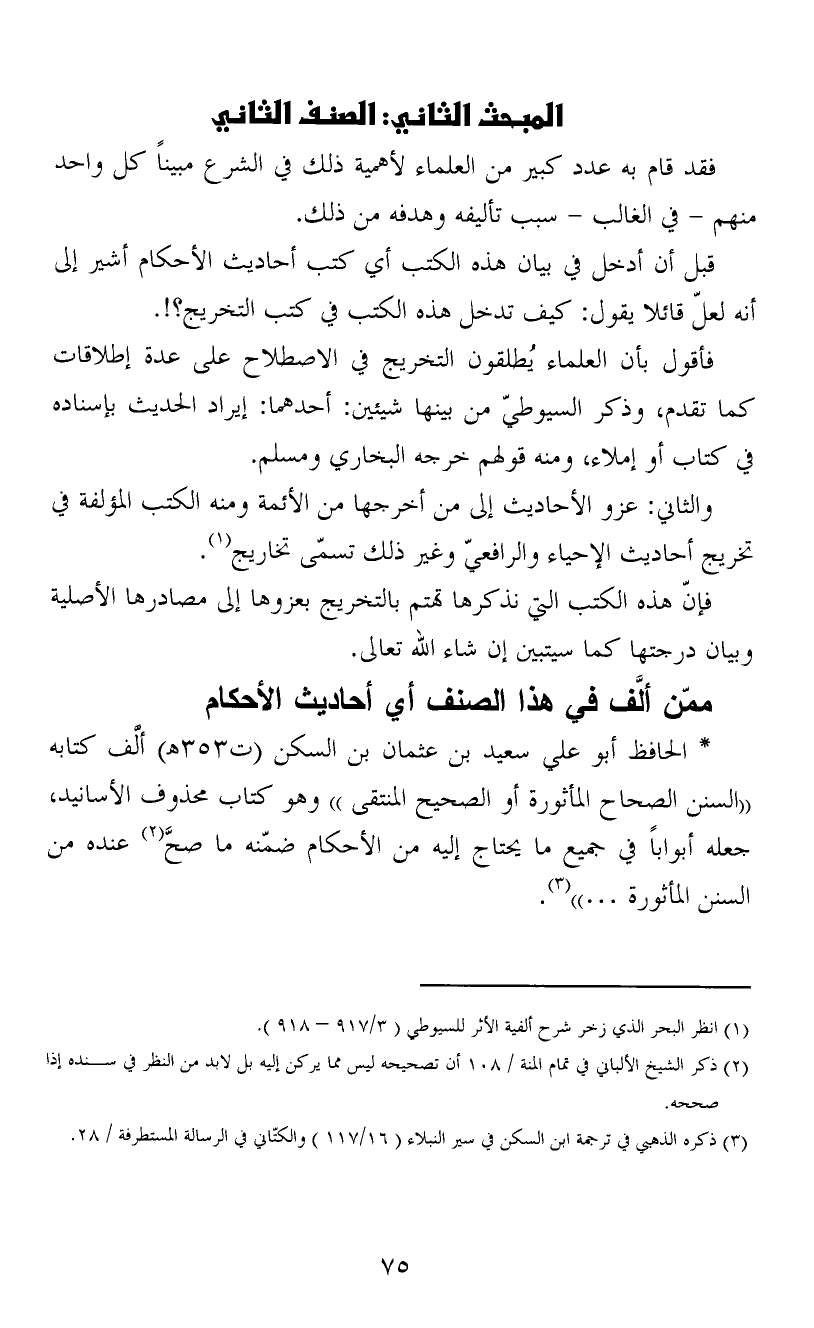 والثاني: عزو الأحاديث إلى من أخرجها من الأئمة ومنه الكتب المؤلفة في تخريج أحاديث الإحياء والرافعيّ وغير ذلك تسمّى تخاريج (1) .