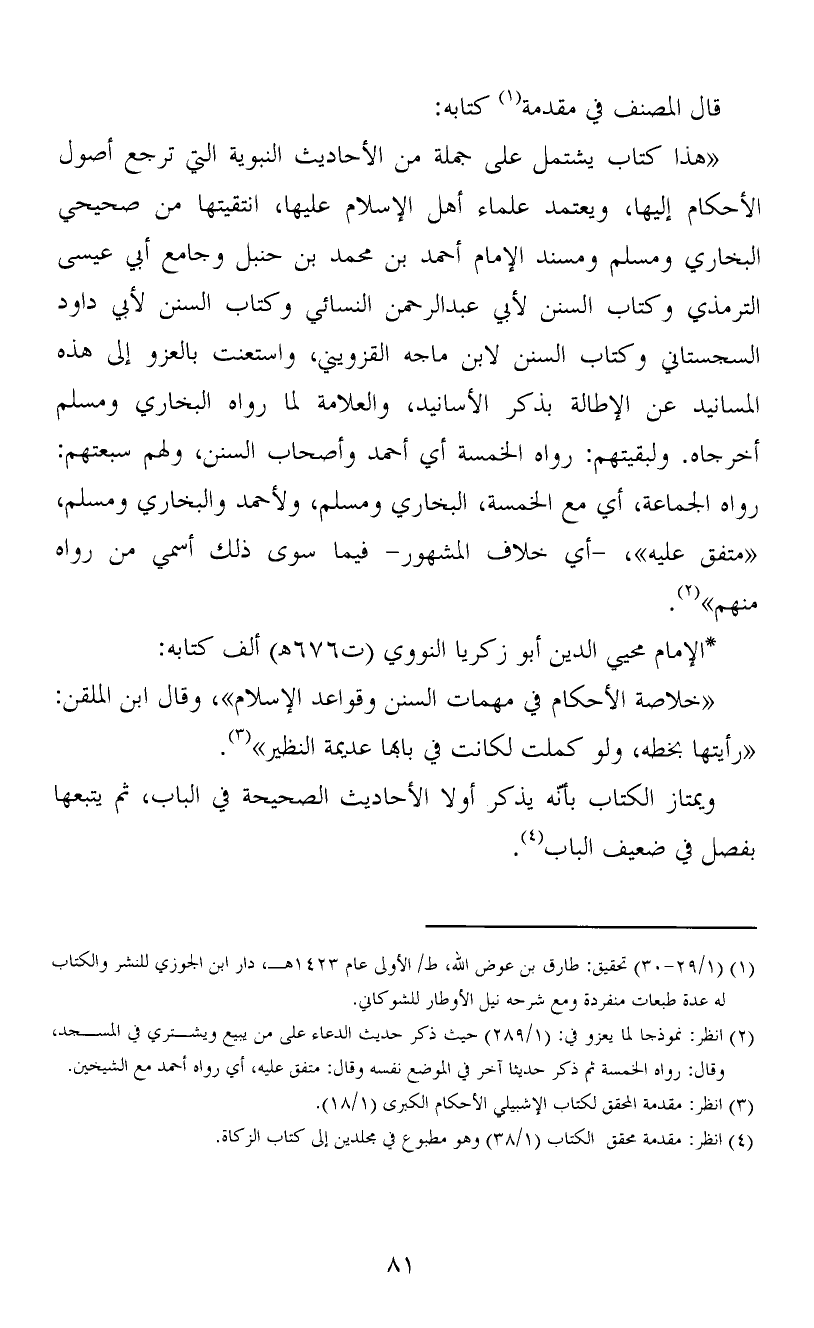 (1) (1/29-30) تحقيق: طارق بن عوض الله، ط/ الأولى عام 1423هـ، دار ابن الجوزي للنشر والكتاب له عدة طبعات منفردة ومع شرحه نيل الأوطار للشوكاني.