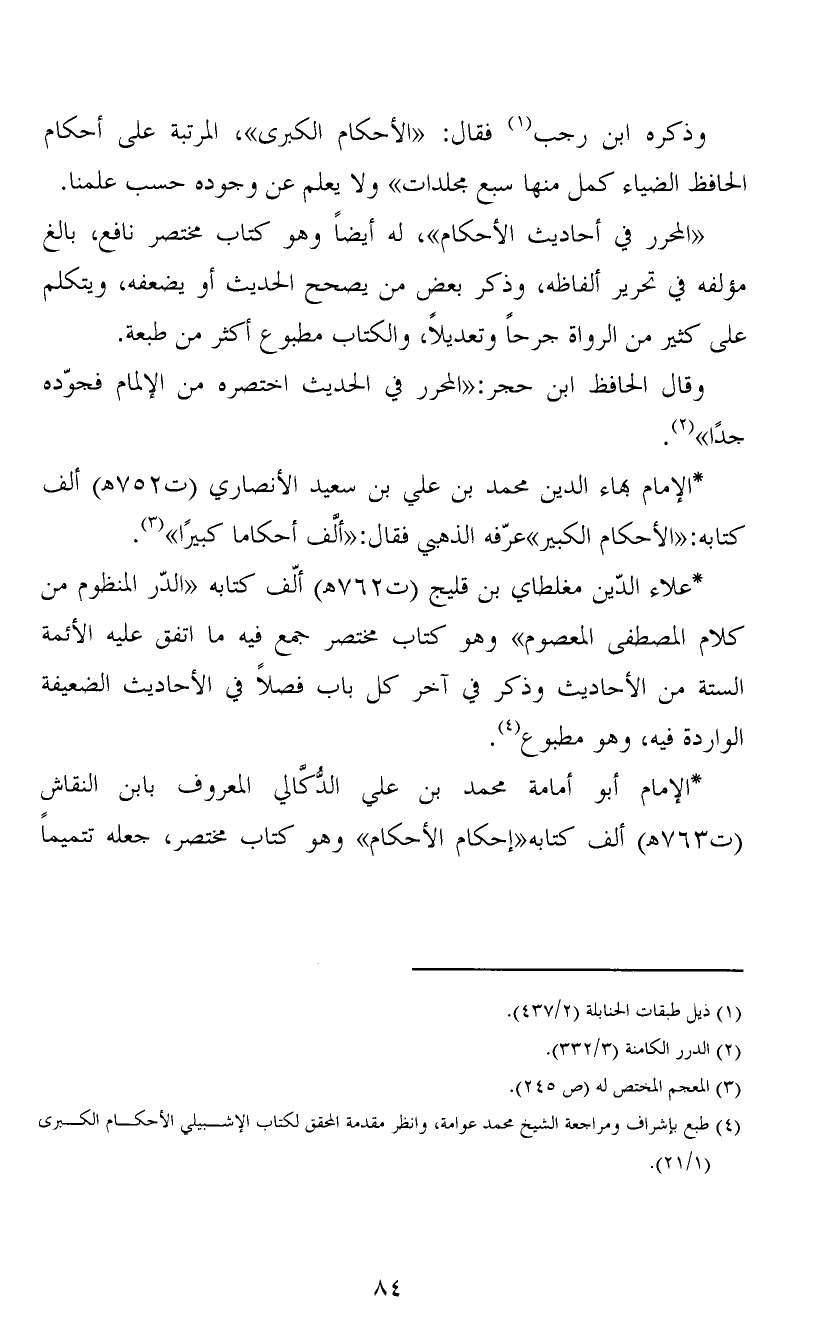 *الإمام بهاء الدين محمد بن علي بن سعيد الأنصاري (ت752هـ) ألف كتابه: «الأحكام الكبير» عرّفه الذهبي فقال: «ألَّف أحكاما كبيرًا» (2) .