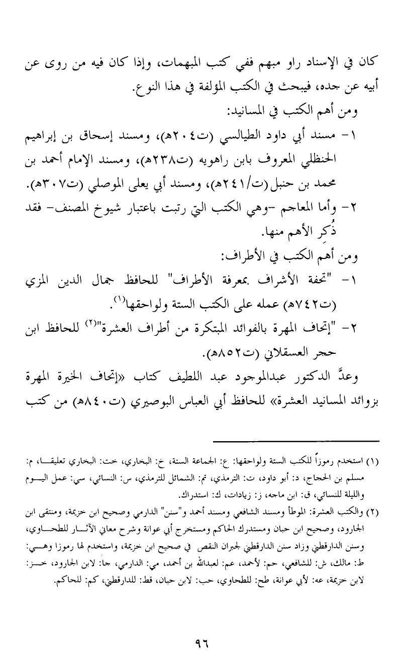وعدَّ الدكتور عبد الموجود عبد اللطيف كتاب «إتحاف الخيرة المهرة بزوائد المسانيد العشرة» للحافظ أبي العباس البوصيري (ت840هـ) من كتب