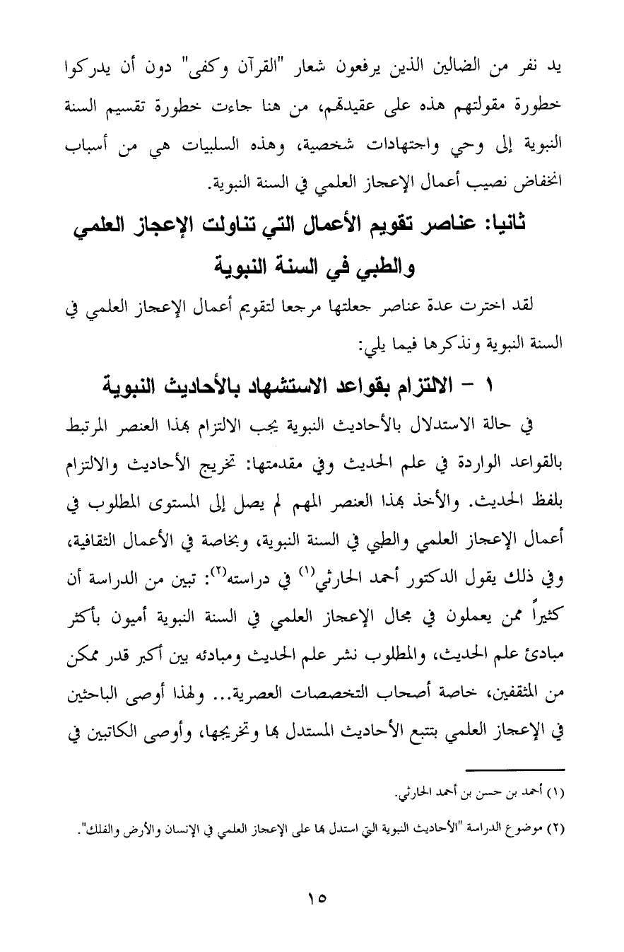 لقد اخترت عدة عناصر جعلتها مرجعا لتقويم أعمال الإعجاز العلمي في السنة النبوية ونذكرها فيما يلي: