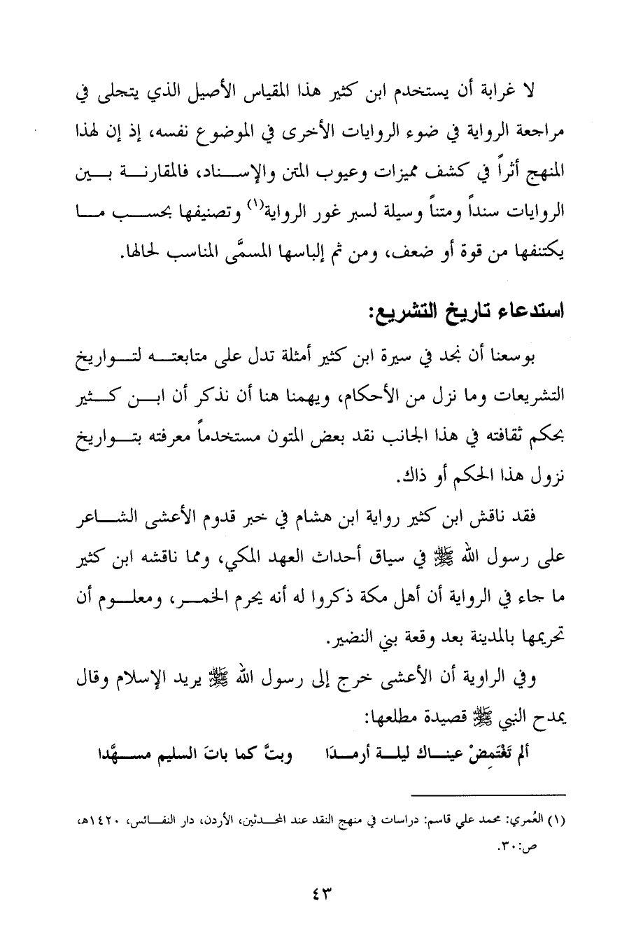 (1) العُمري: محمد علي قاسم: دراسات في منهج النقد عند المحدثين، الأردن، دار النفائس، 1420هـ، ص:30.