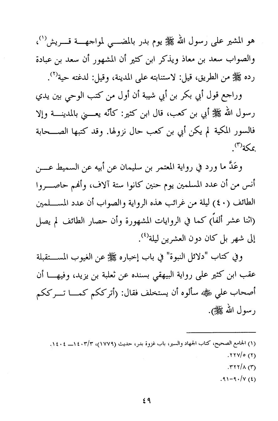 وراجع قول أبي بكر بن أبي شيبة أن أول من كتب الوحي بين يدي رسول الله صلى الله عليه وسلم أبي بن كعب، قال ابن كثير: كأنّه يعني بالمدينة وإلا فالسور المكية لم يكن أبي بن كعب حال نزولها. وقد كتبها الصحابة بمكة (3) .