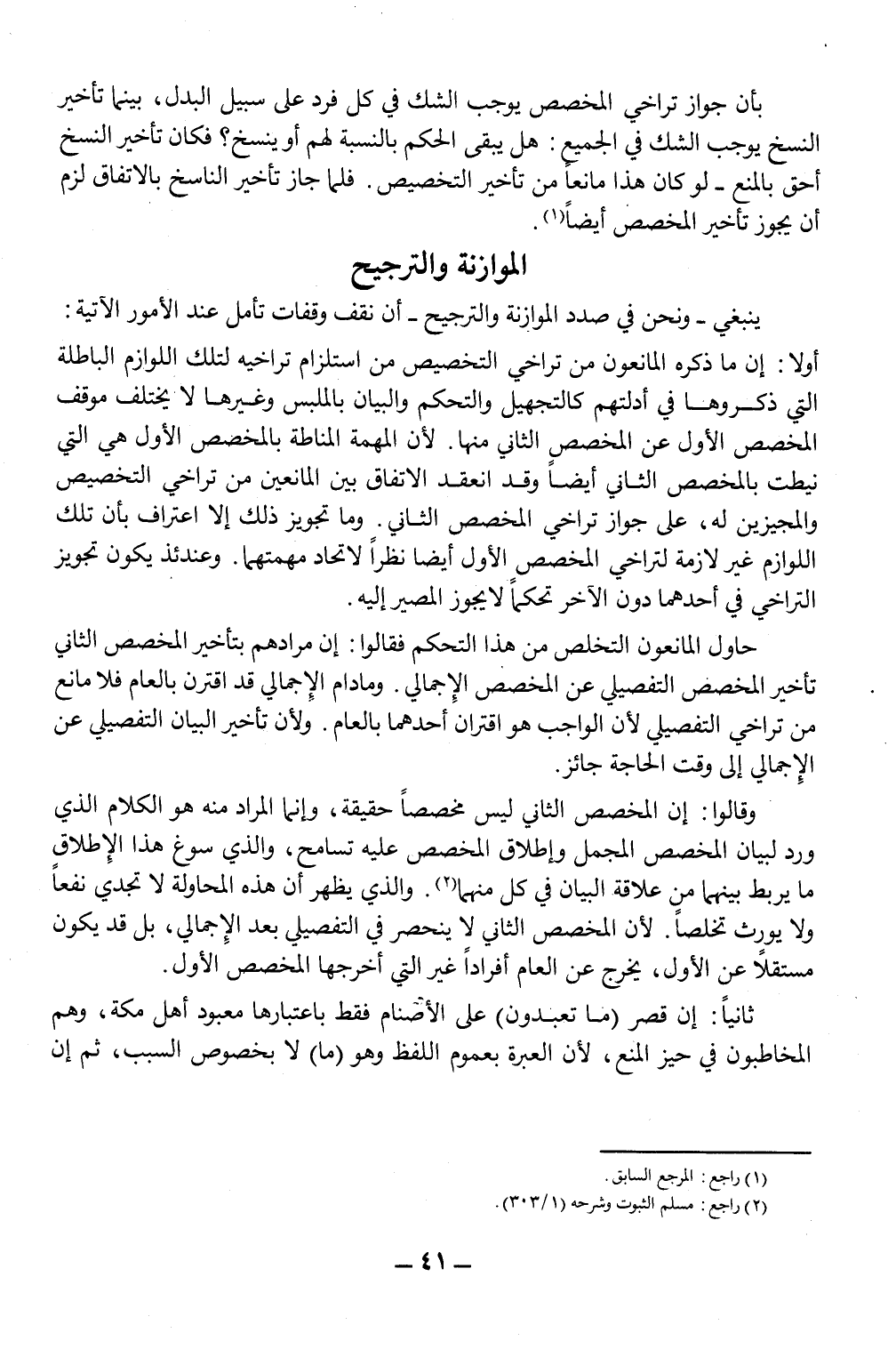 ينبغي - ونحن في صدد الموازنة والترجيح - أن نقف وقفات تأمل عند الأمور الآتية: