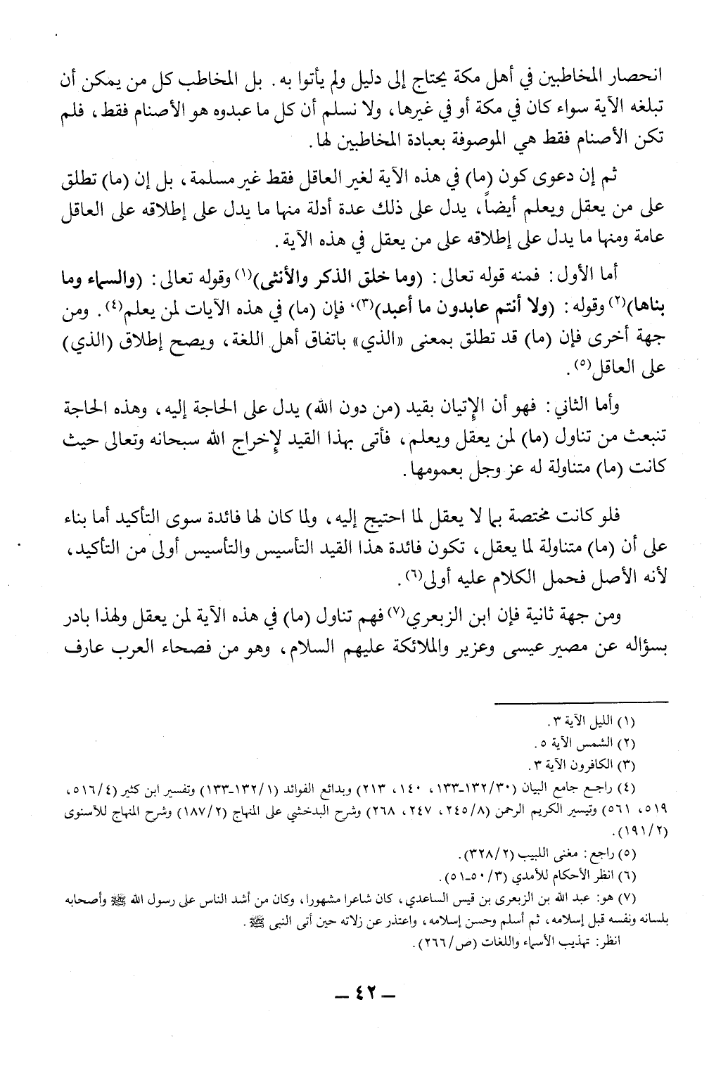ومن جهة ثانية فإن ابن الزبعري7 فهم تناول (ما) في هذه الآية لمن يعقل ولهذا بادر بسؤاله عن مصير عيسى وعزير والملائكة عليهم السلام، وهو من فصحاء العرب عارف