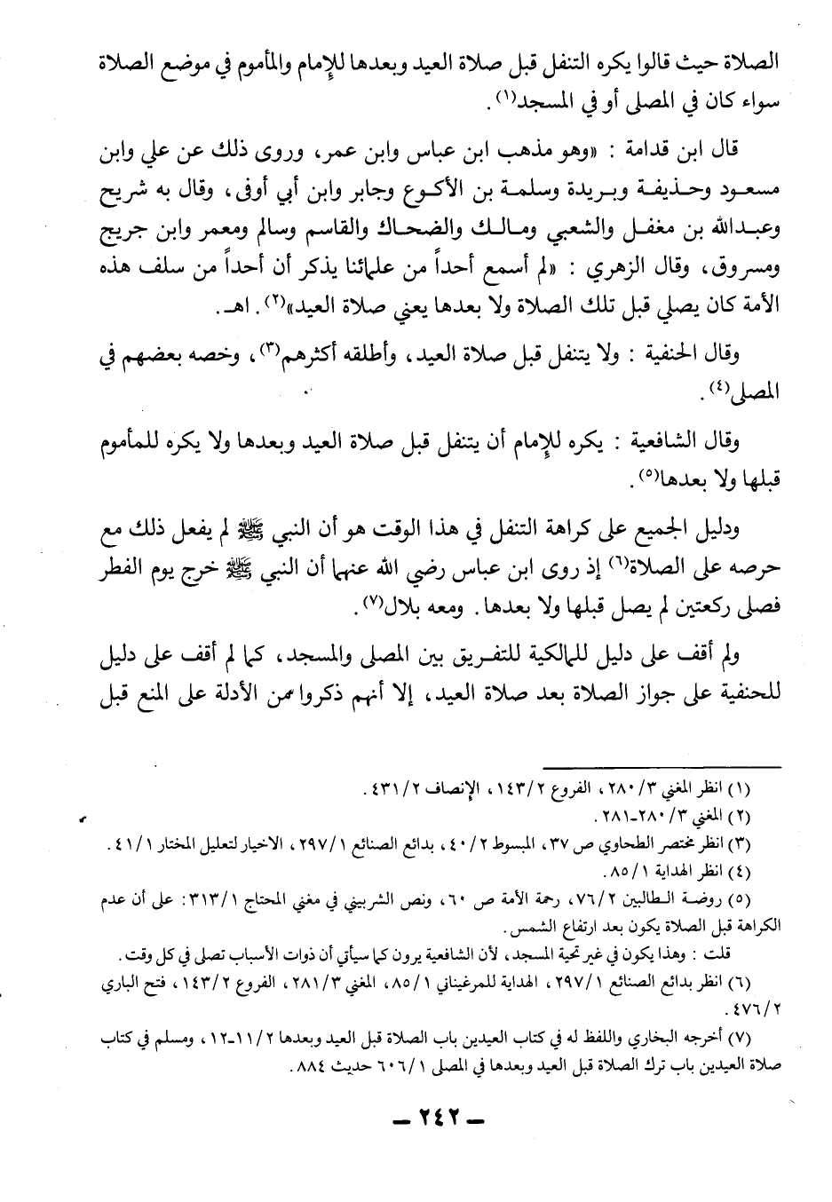 الصلاة حيث قالوا يكره التنفل قبل صلاة العيد وبعدها للإمام والمأموم في موضع الصلاة سواء كان في المصلى أو في المسجد1.