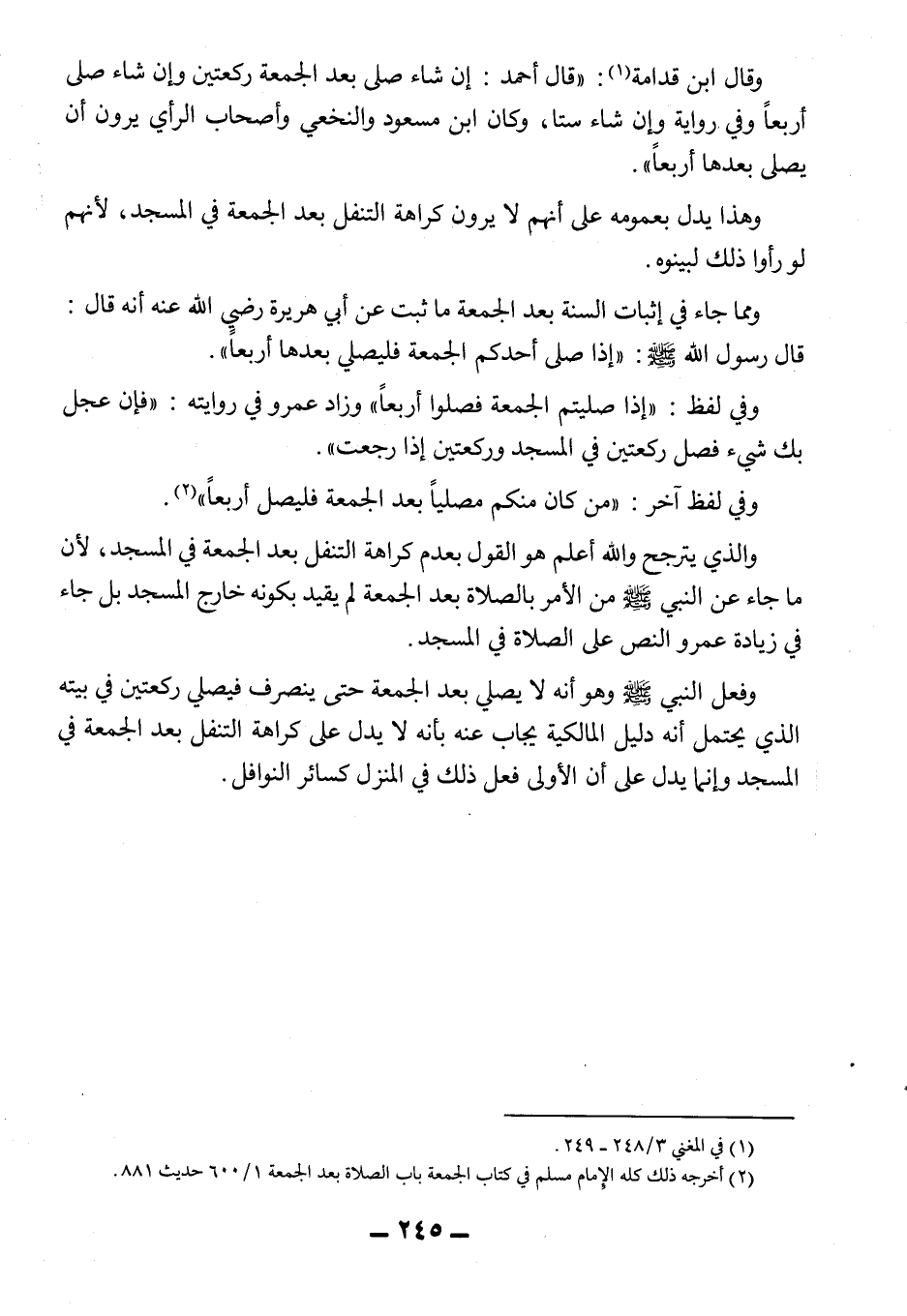 2 أخرجه ذلك كله الإمام مسلم في كتاب الجمعة باب الصلاة بعد الجمعة 1/ 600 حديث 881.