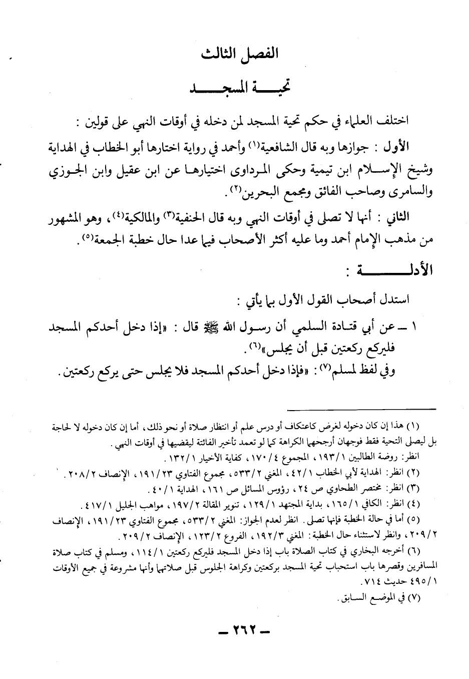 1- عن أبي قتادة السلمي أن رسول الله صلى الله عليه وسلم قال: "إذا دخل أحدكم المسجد فليركع ركعتين قبل أن يجلس " 6.