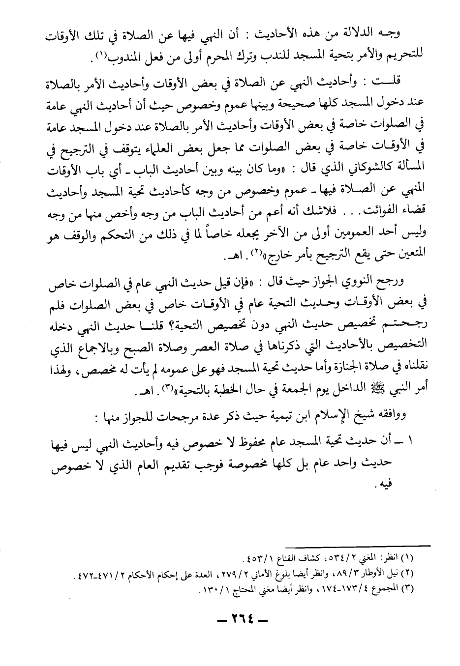 عند دخول المسجد كلها صحيحة وبينها عموم وخصوص حيث أن أحاديث النهي عامة في الصلوات خاصة في بعض الأوقات وأحاديث الأمر بالصلاة عند دخول المسجد عامة في الأوقات خاصة في بعض الصلوات مما جعل بعض العلماء يتوقف في الترجيح في المسألة كالشوكاني الذي قال: "وما كان بينه وبين أحاديث الباب- أي باب الأوقات المنهي عن الصلاة فيها- عموم وخصوص من وجه كأحاديث تحية المسجد وأحاديث قضاء الفوائت ... فلاشك أنه أعم من أحاديث الباب من وجه وأخص منها من وجه وليس أحد العمومين أولى من الآخر يجعله خاصا لما في ذلك من التحكم والوقف هو المتعين حتى يقع الترجيح بأمر خارج " 2 اهـ.