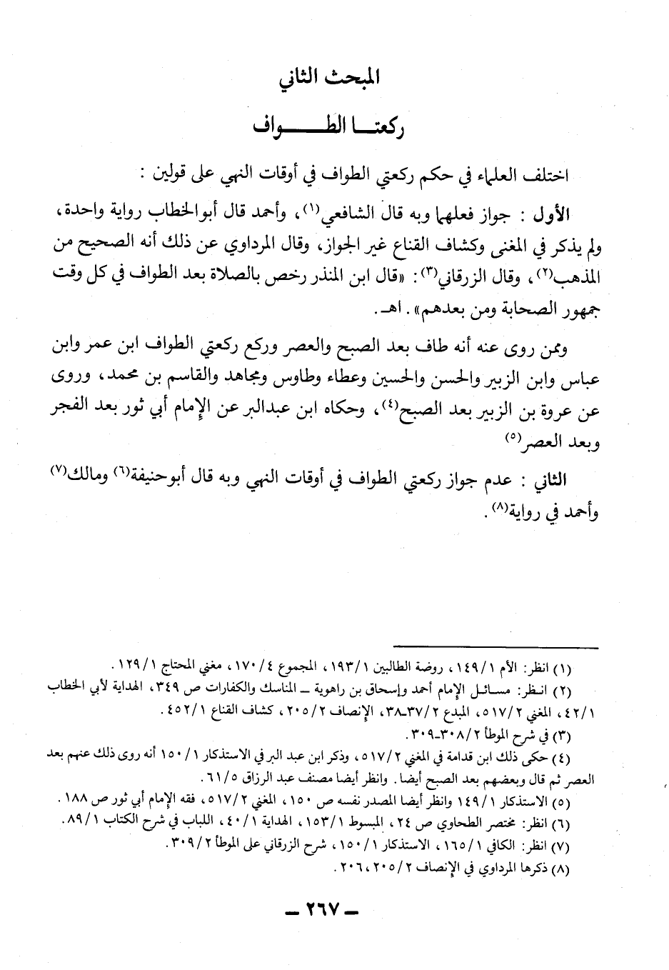 الثاني: عدم جواز ركعتي الطواف في أوقات النهي وبه قال أبو حنيفة6 ومالك7وأحمد في رواية8.