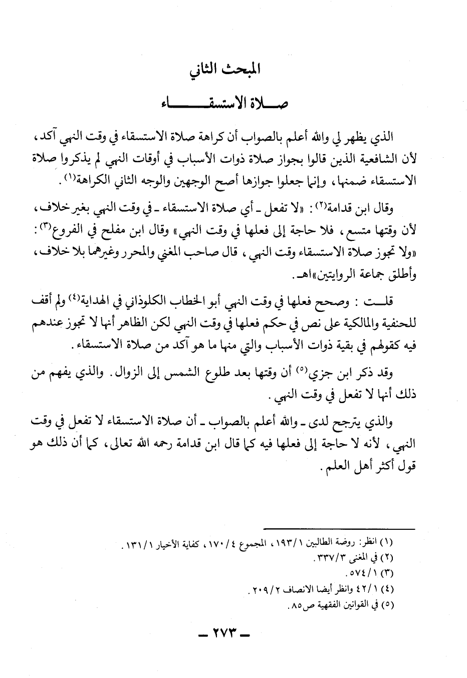 قلت: وصحح فعلها في وقت النهي أبو الخطاب الكلوذاني في الهداية4 ولم أقف للحنفية والمالكية على نص في حكم فعلها في وقت النهي لكن الظاهر أنها لا تجوز عندهم فيه كقولهم في بقية ذوات الأسباب والتي منها ما هوآكد من صلاة الاستسقاء.