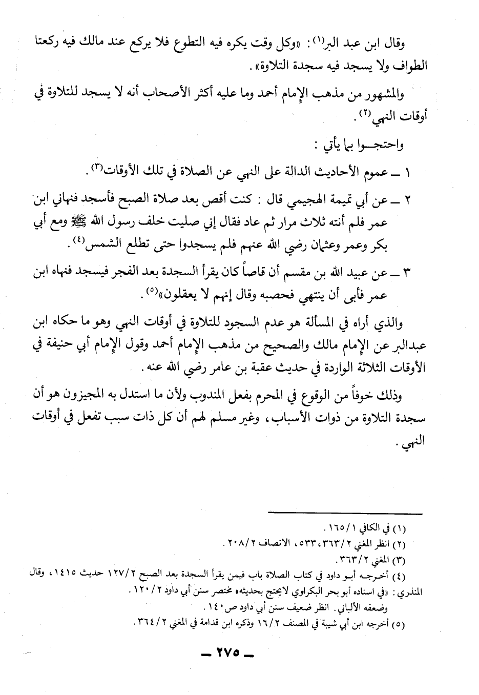 وذلك خوفا من الوقوع في المحرم بفعل المندوب ولأن ما استدل به المجيزون هو أن سجدة التلاوة من ذوات الأسباب، وغير مسلم لهم أن كل ذات سبب تفعل في أوقات النهي.