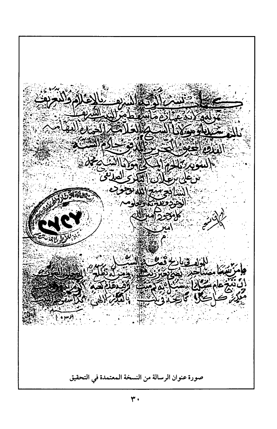 صورة عنوان الرسالة من النسخة المعتمدة في التحقيق