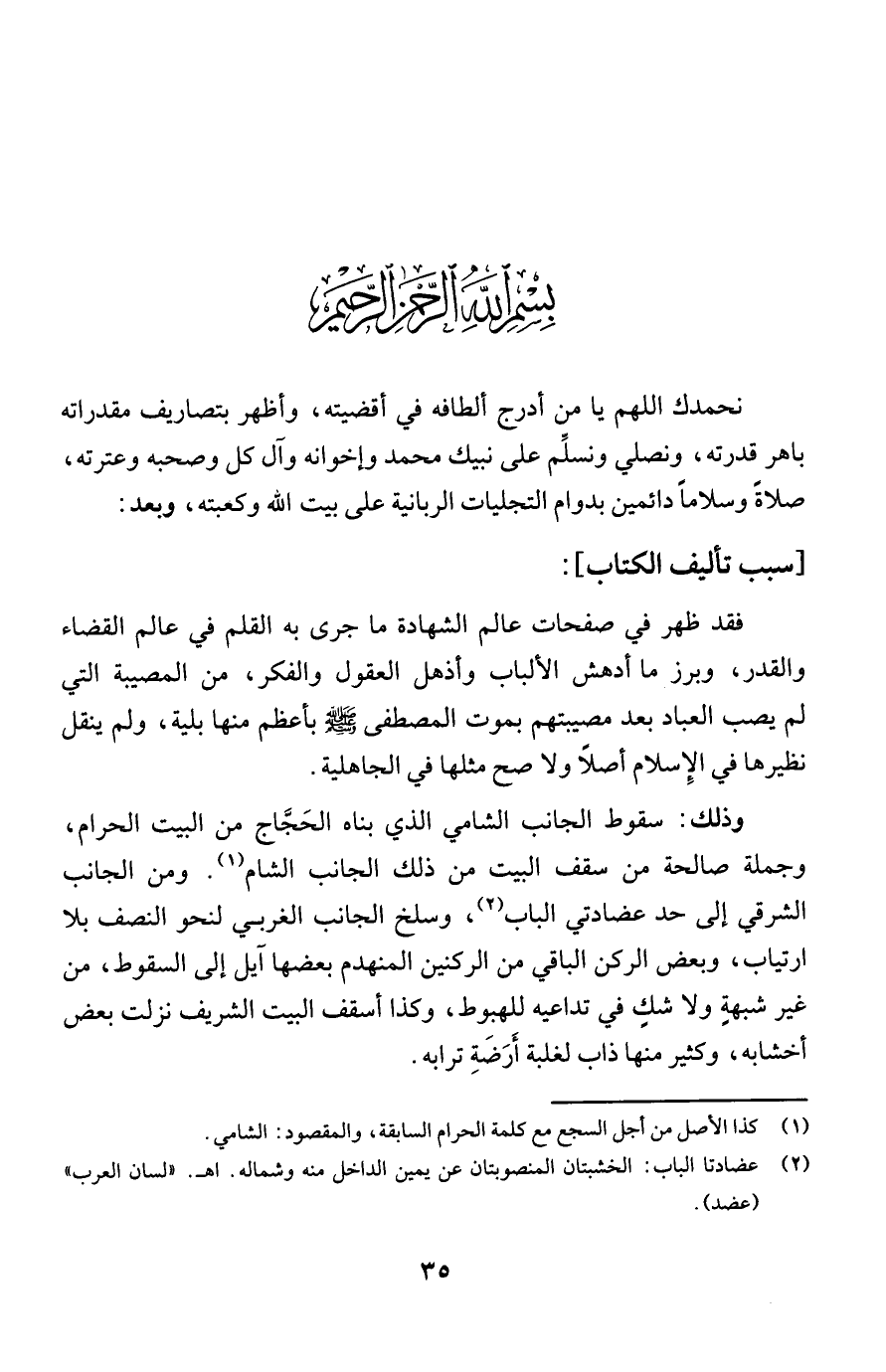 نحمدك اللهم يا من أدرج ألطافه في أقضيته، وأظهر بتصاريف مقدراته باهر قدرته، ونصلي ونسلِّم على نبيك محمَّد وإخوانه وآل كل وصحبه وعترته، صلاةً وسلامًا دائمين بدوام التجليات الربانية على بيت الله وكعبته، وبعد: