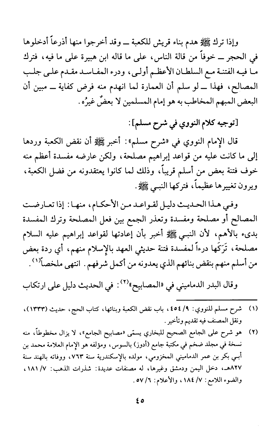 (¬1) شرح مسلم للنووي: 9/ 454، باب نقض الكعبة وبنائها، كتاب الحج، حديث (1333)، ونقل المصنف فيه تقديم وتأخير.