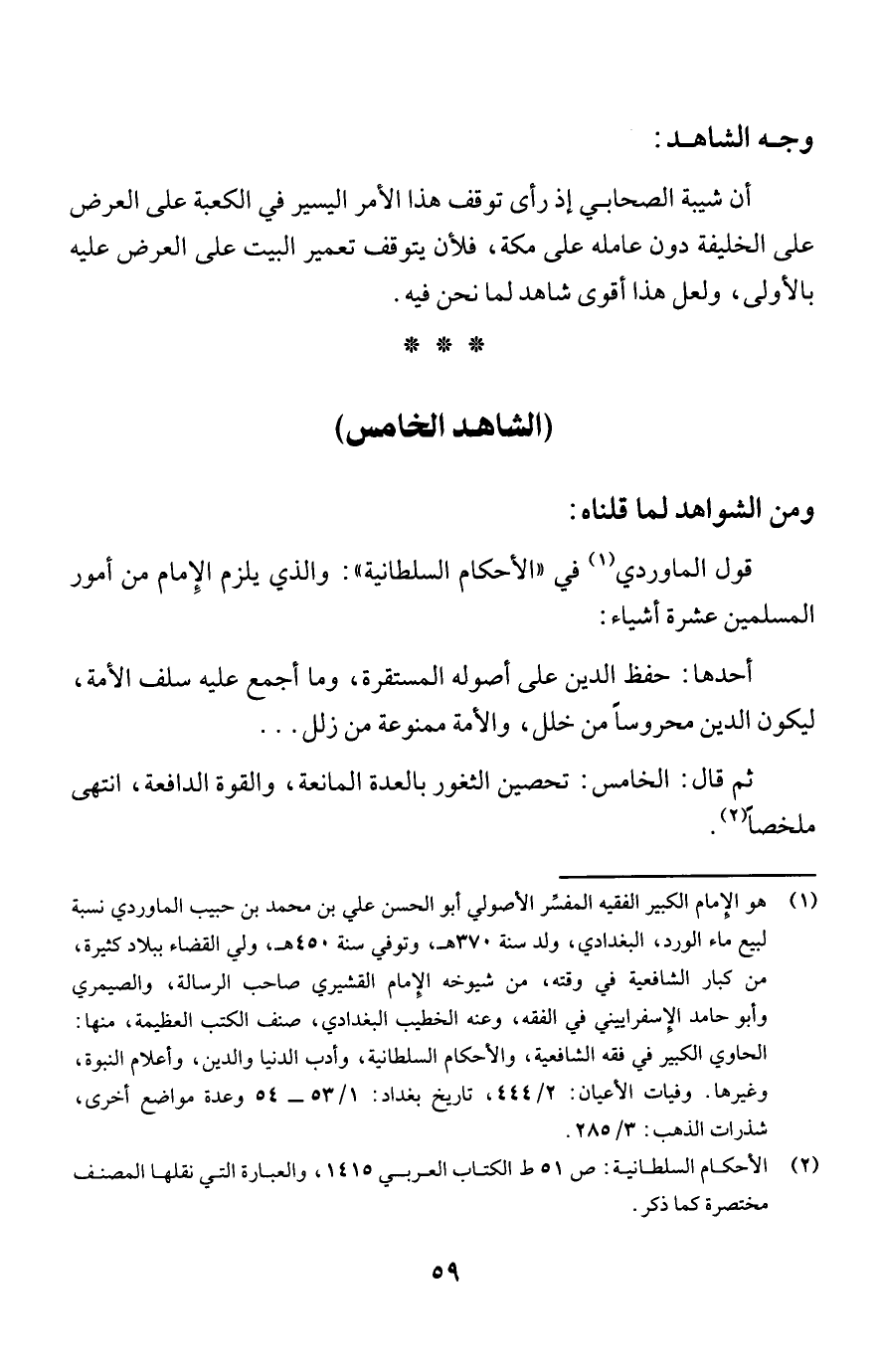 (¬2) الأحكام السلطانية: ص 51 ط الكتاب العربي 1415، والعبارة التي نقلها المصنف مختصرة كما ذكر.