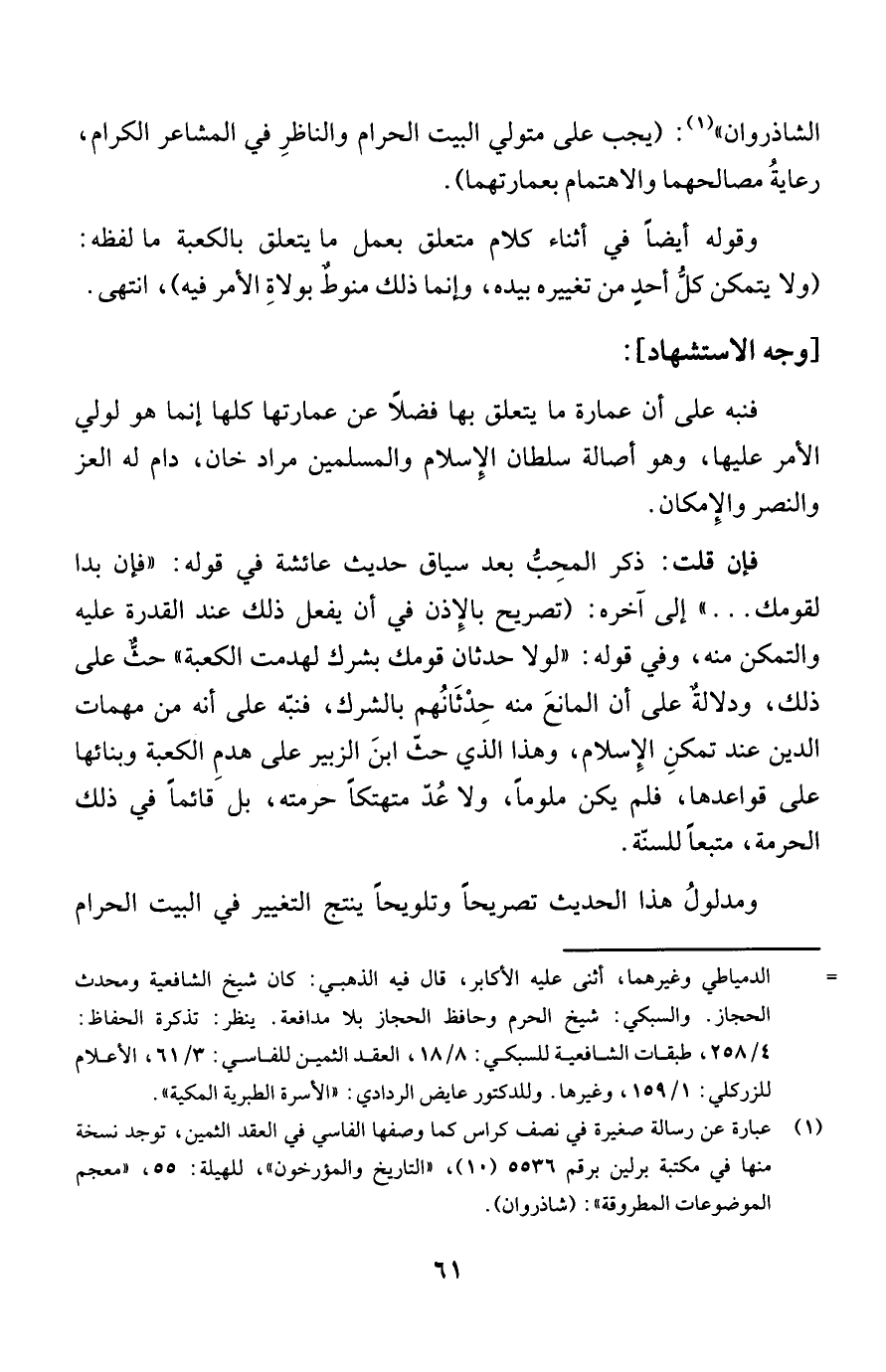 الشاذروان" (¬1): (يجب على متولي البيت الحرام والناظرِ في المشاعر الكرام، رعايةُ مصالحهما والاهتمام بعمارتهما).
