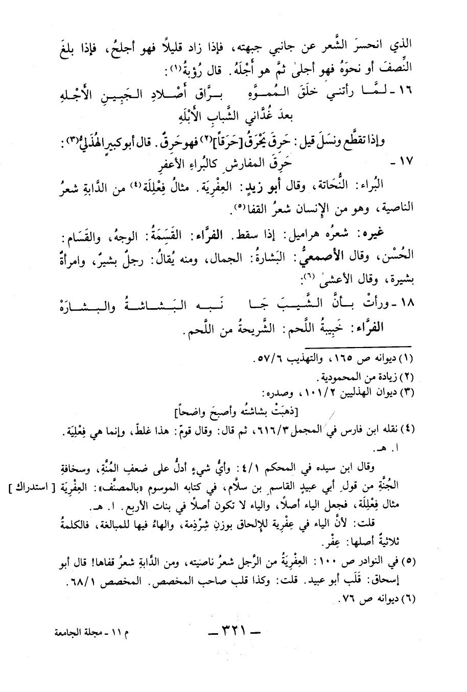 5 في النوادر ص 100: العِفْرِيَةُ من الرجل شعرُ ناصيته، ومن الدّابةِ شعرُ قفاها! قال أبو إسحاق: قلب أبو عبيد. قلت: وكذا قلب صاحب المخصص. المخصص 1/68.