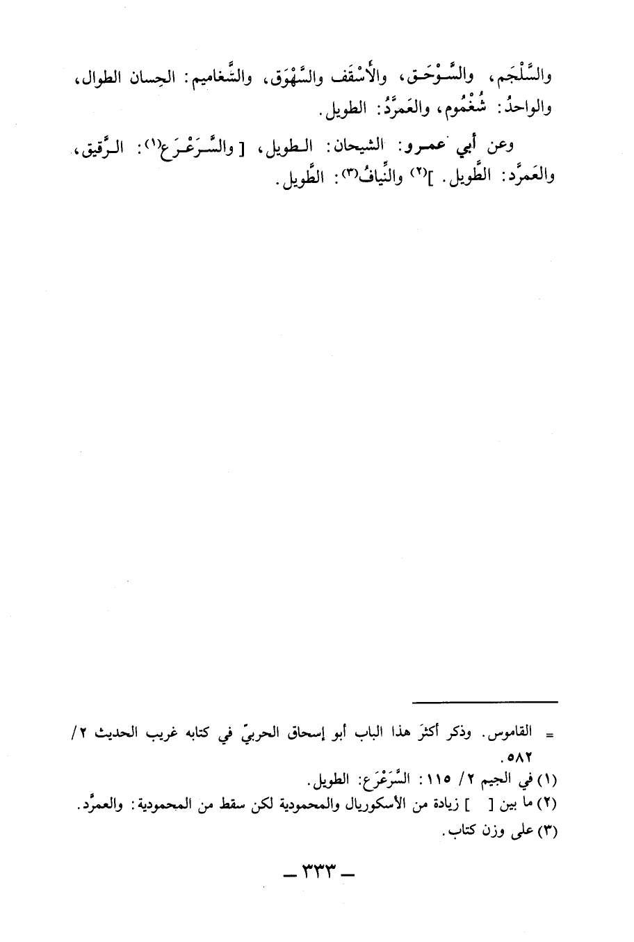 والسَّلْجَم، والسوْحَق، والأسْقَف والسَّهْوَق، والشَّغاميم: الحِسان الطوال، والواحد: شُغموم، والعَمرَّدُ: الطويل.