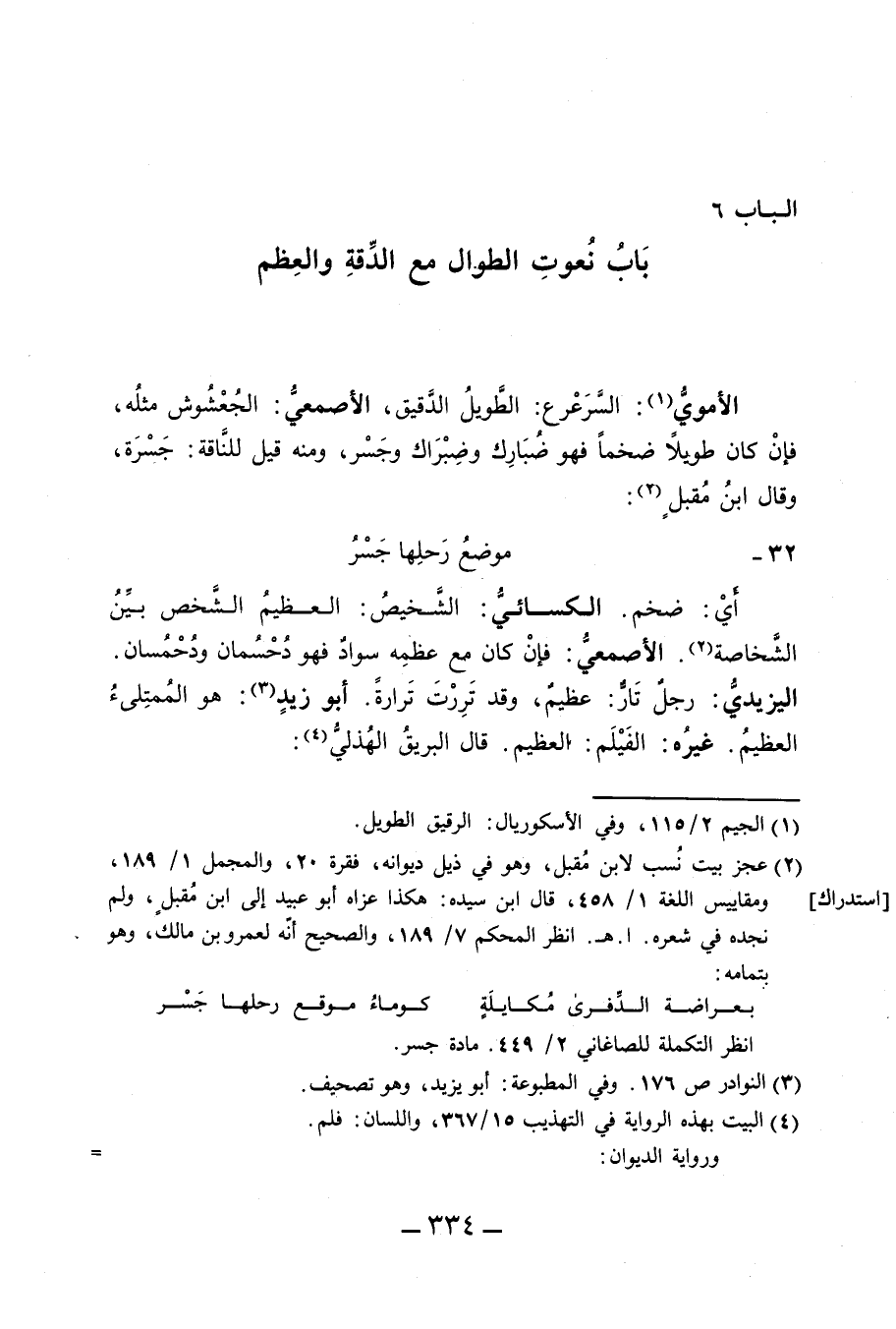 بَابُ نُعوتِ الطوال مع الدِّقةِ والعِظم